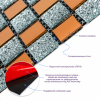Мозаїка з декоративного скла 298х298х4,5мм Сірий+оранж SW-00002361