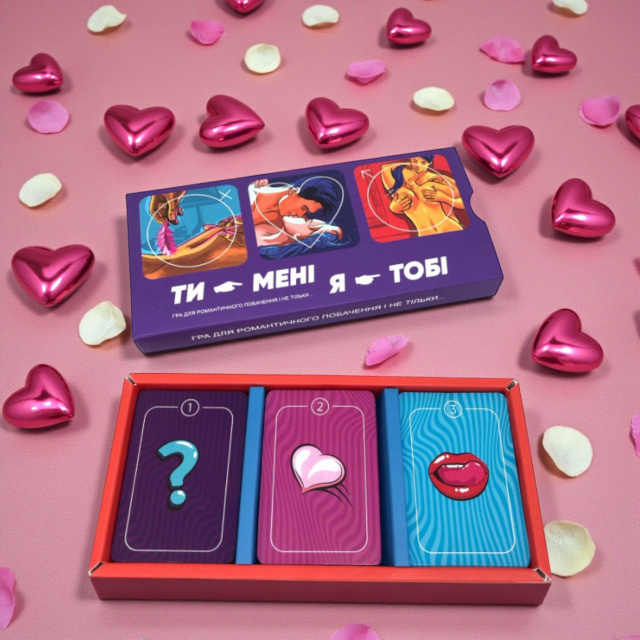 Карткова гра для пар «Ти мені я тобі» — це ідеальний інструмент для тих, хто хоче зробити відносини глибшими, відкритими та насиченими емоціями. Гра допомагає парам краще зрозуміти один одного, розкрити приховані бажання та додати в інтимне життя більше довіри, гри та романтики.