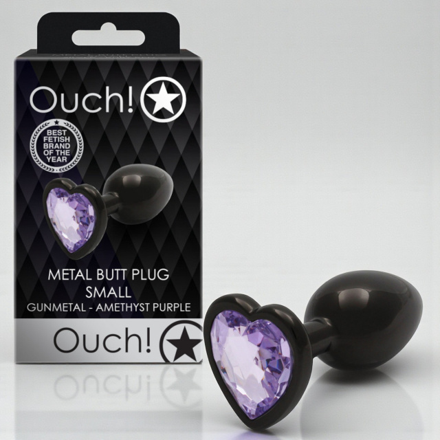 Анальна пробка металева чорна серце для новачків маленька із кристалом Ouch! (S), Запоріжжя