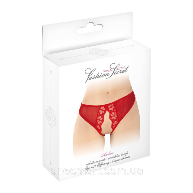 Трусики з розрізом червоні Ambre сексуальна білизна мереживна еротична One Size, Запоріжжя