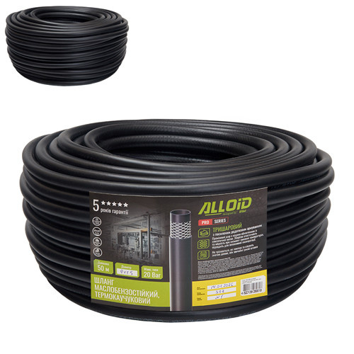 Alloid Pro. Маслобензостойкий термокаучуковый шланг 9 × 15 мм, 50 м — профессиональный шланг повышенной пропускной способности для работы с топливом,